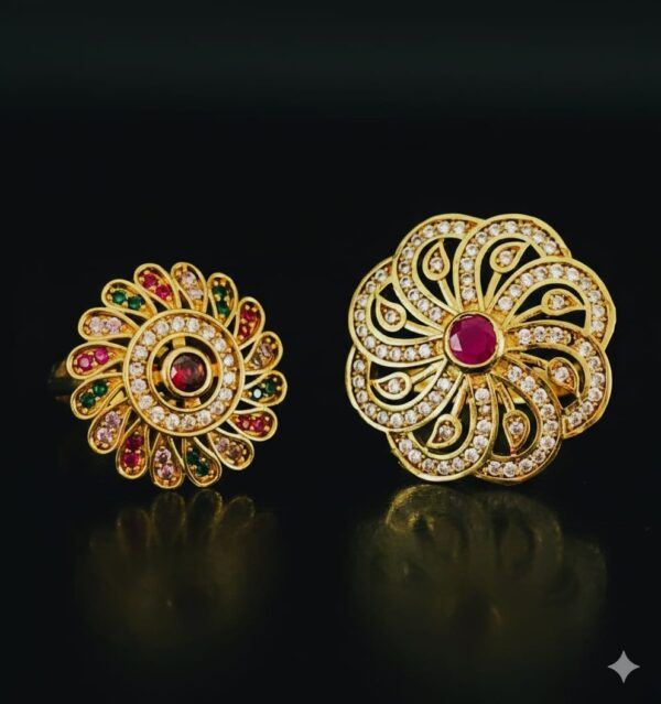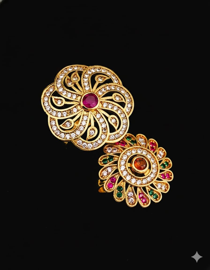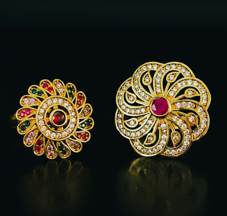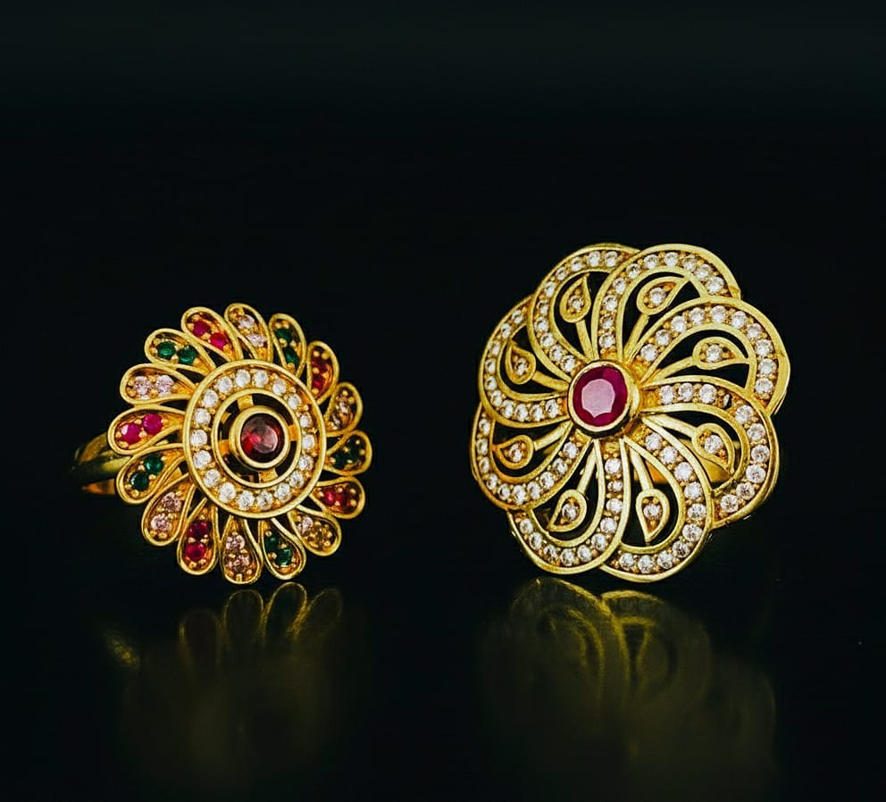 • Traditional Gold-Plated Navaratna-Style Floral Cocktail Ring Set