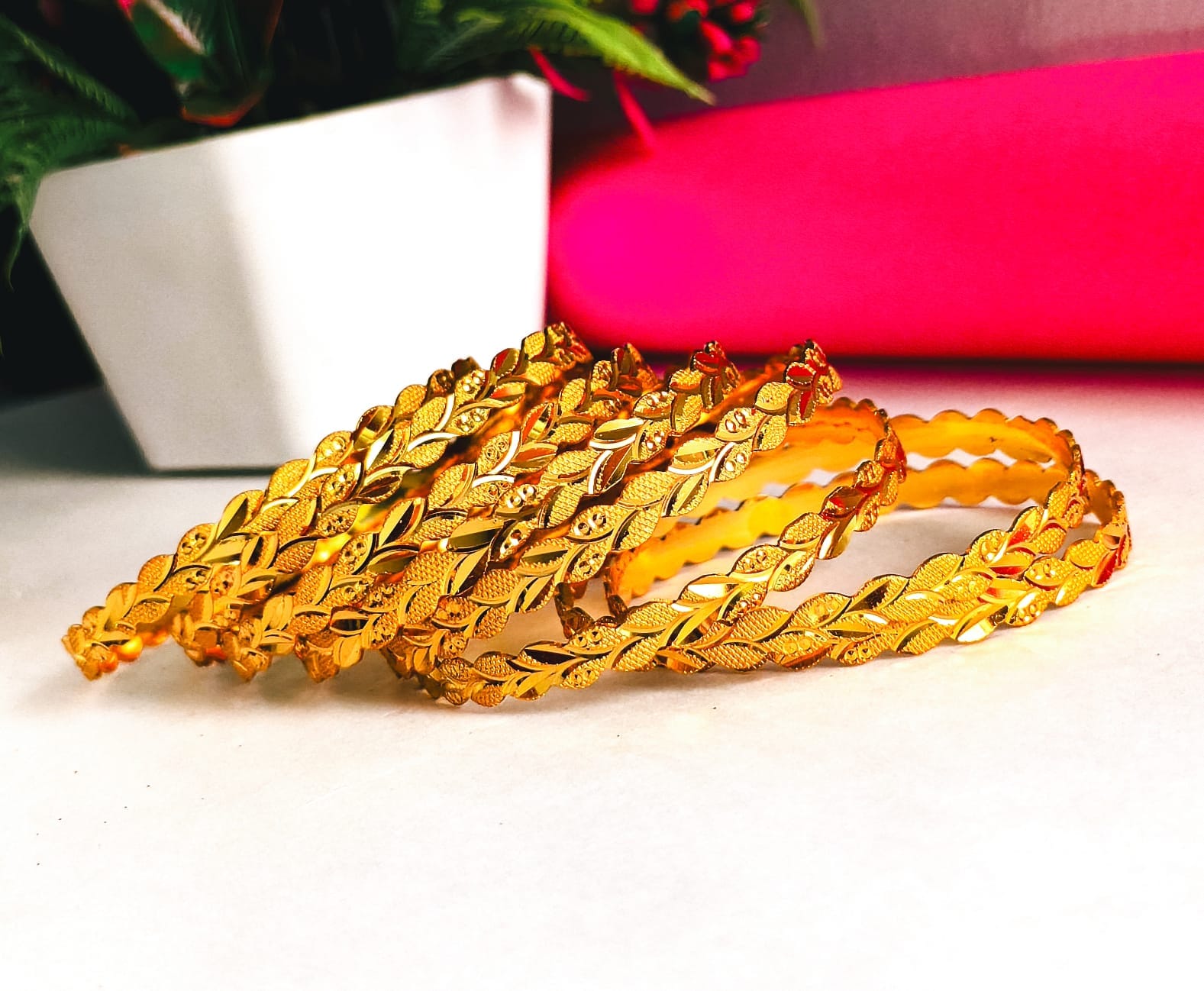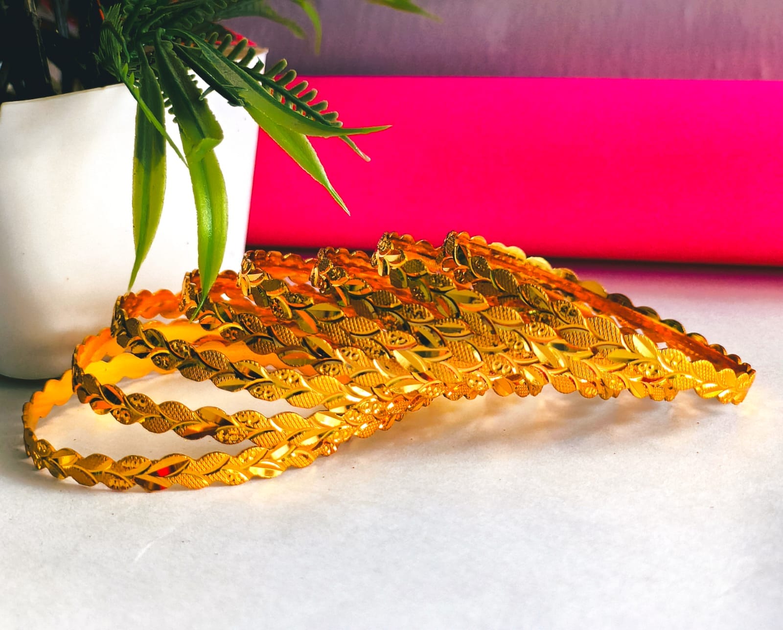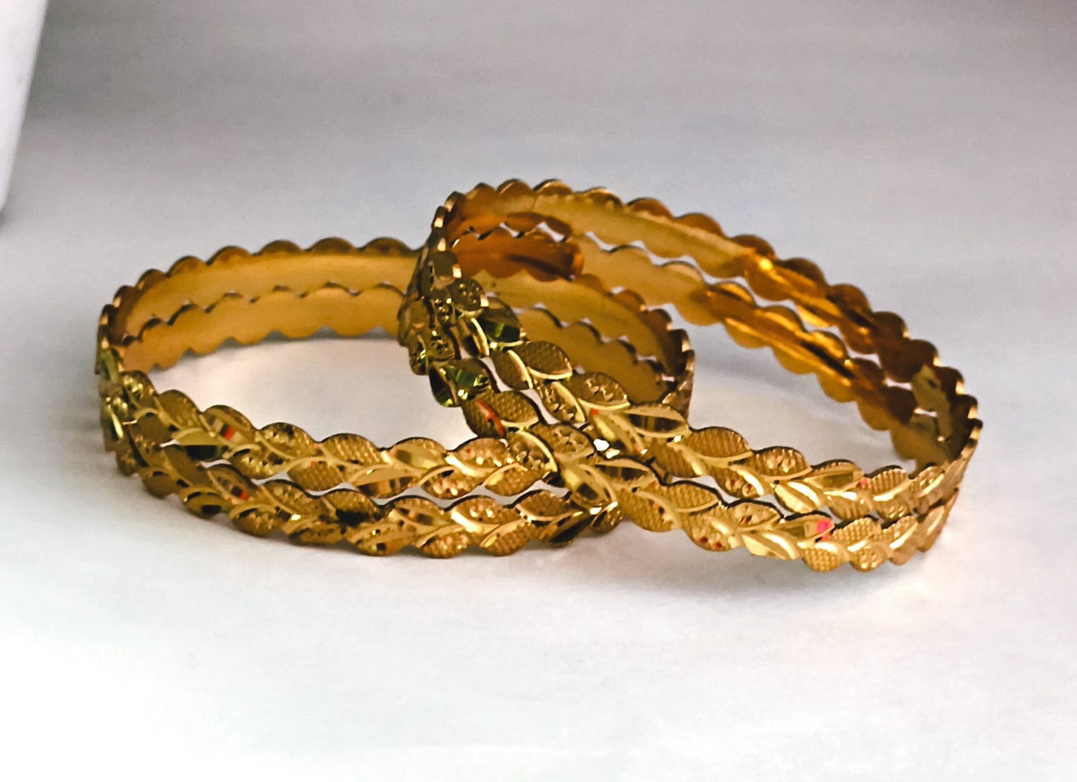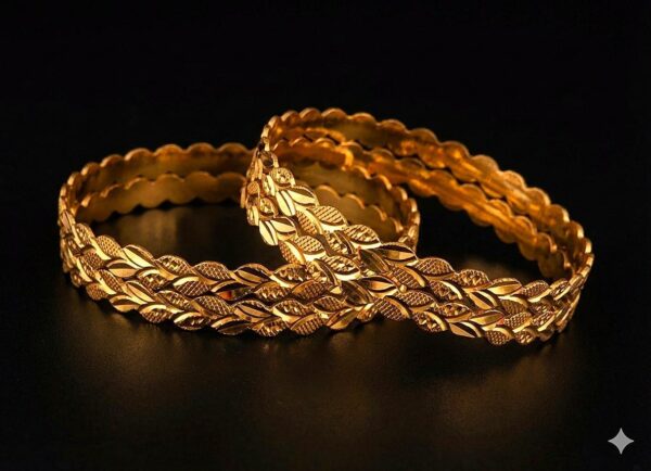 • Leaf Motif Cutwork Gold Bangles for Women