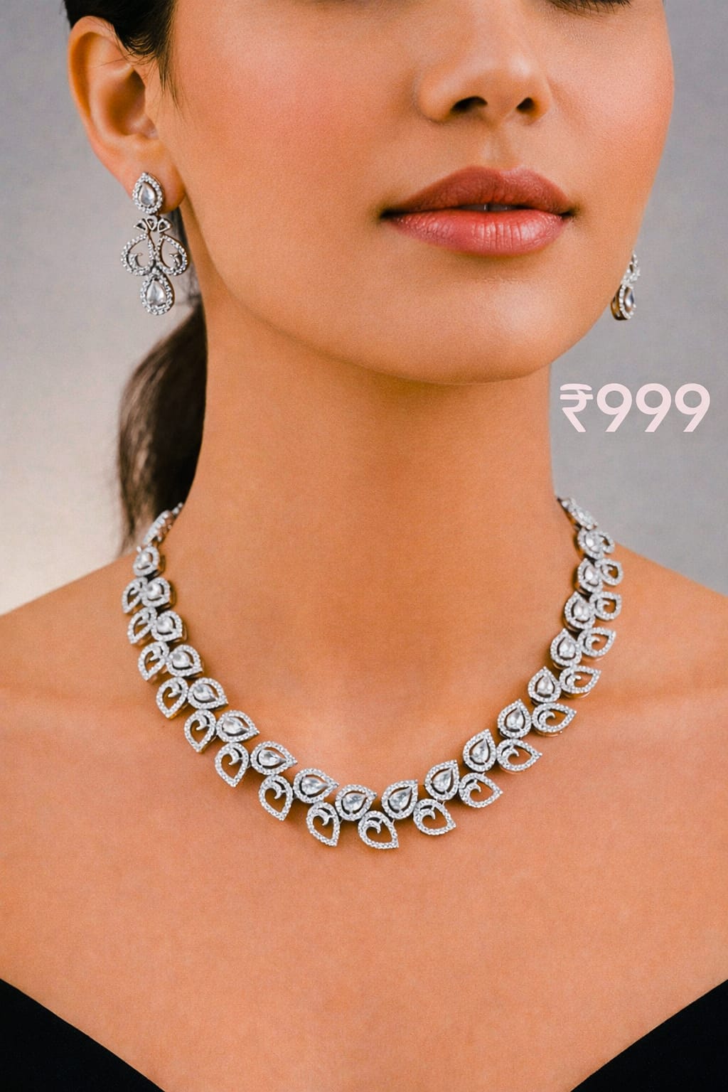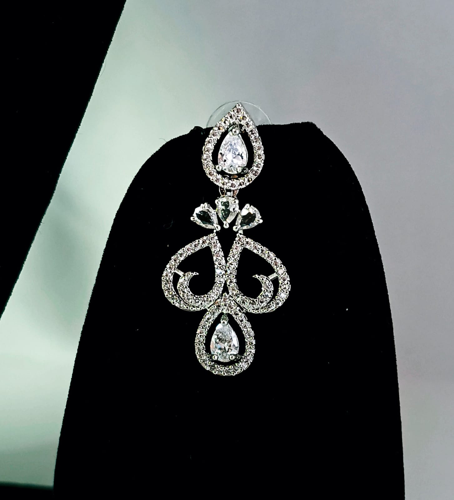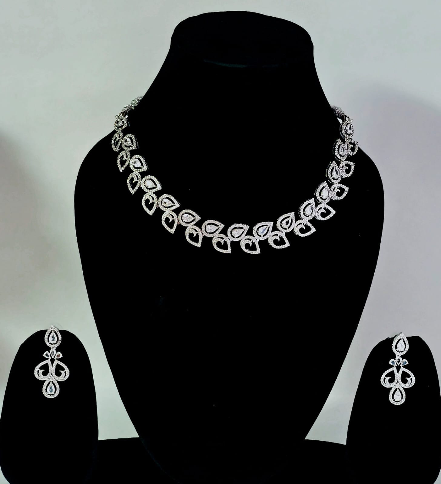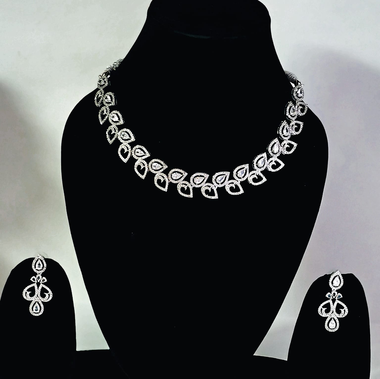 The Finishing Touch: The matching drop earrings mirror the necklace’s teardrop aesthetic, providing a cohesive, high-fashion look perfect for weddings, galas, or milestone celebrations.