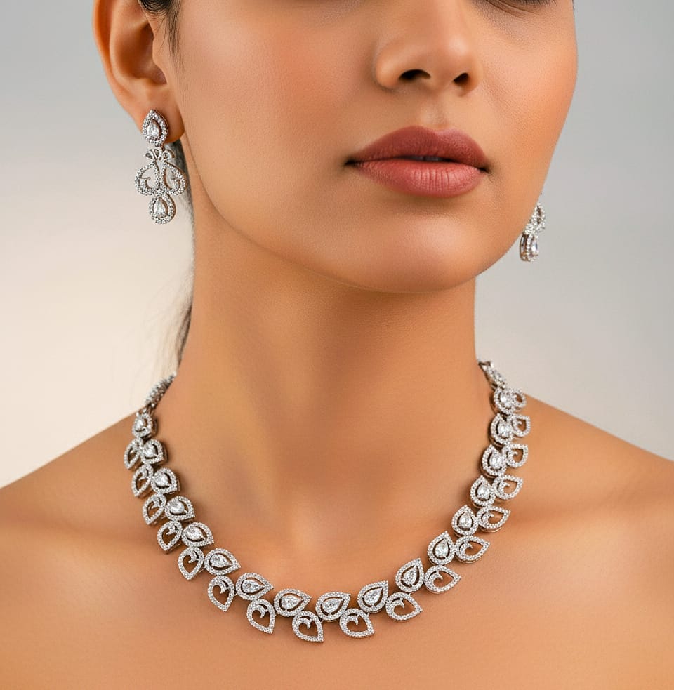 The Craftsmanship: Set in premium white gold (or high-quality rhodium-plated sterling silver), the articulated design ensures the necklace contours gracefully against the collarbone for maximum comfort and impact.