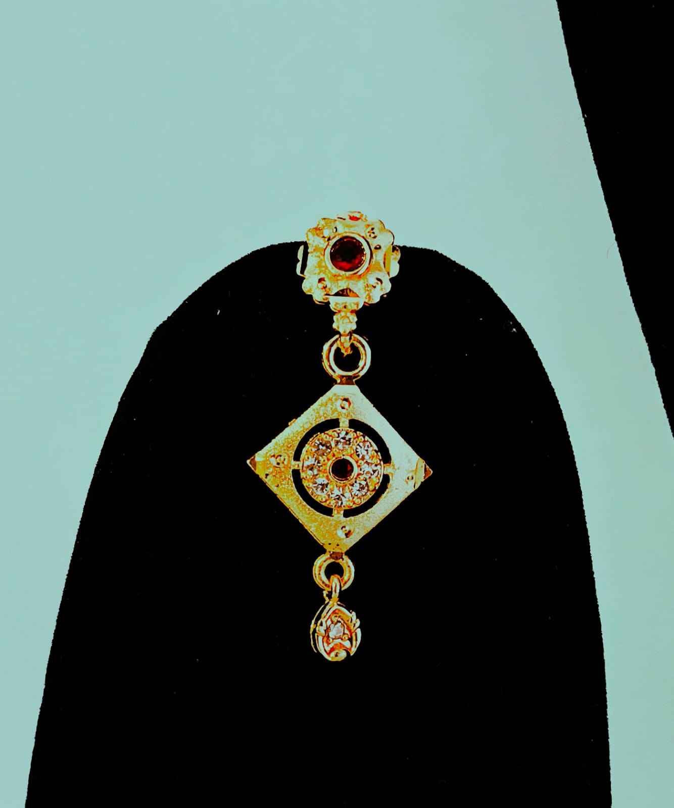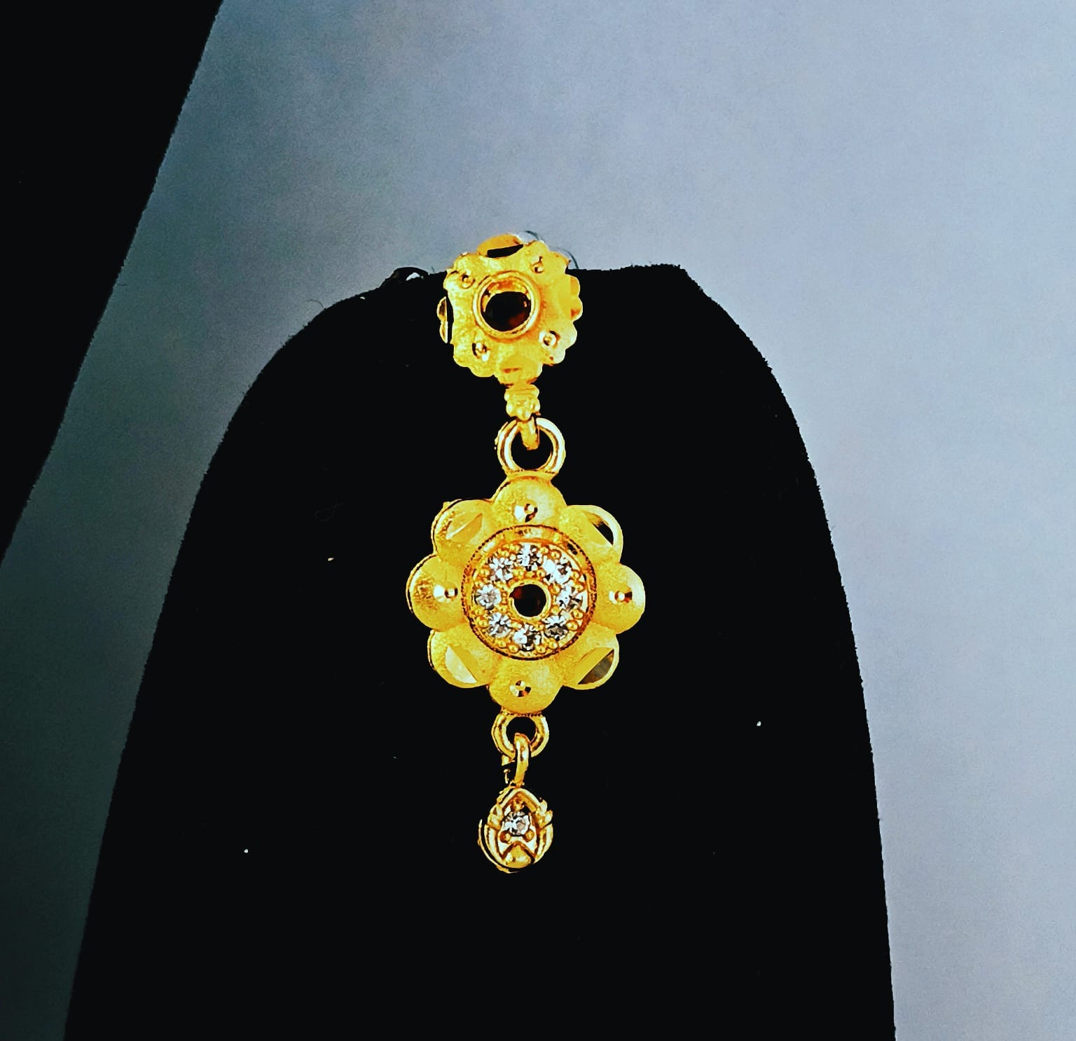 ​Design: Geometric diamond frame with floral accents and stone detailing.