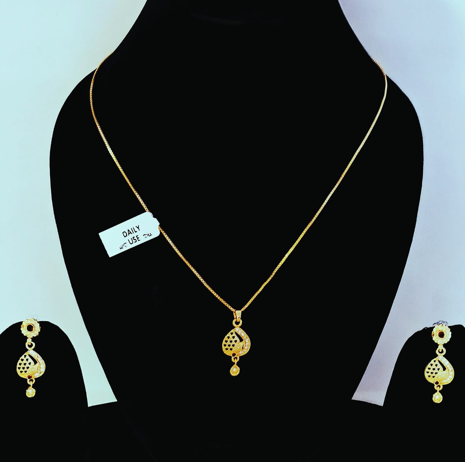 ​The set includes a pair of matching drop earrings that mirror the pendant’s intricate design, creating a cohesive and polished look. Lightweight yet impactful, this set is perfect for layering or wearing as a standalone statement piece.