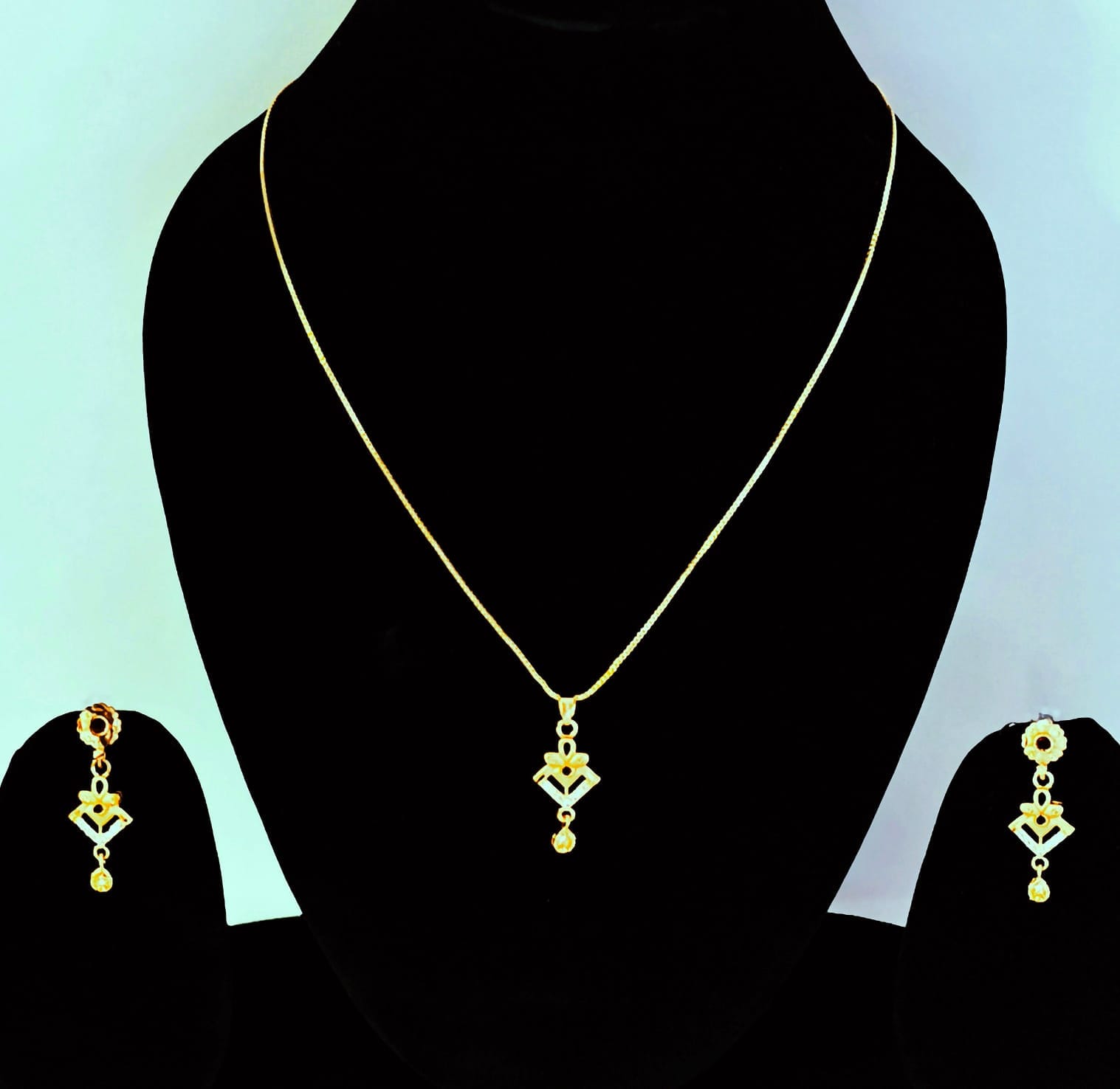 Elegant Geometric Gold Plated Pendant Necklace & Matching Drop Earrings Set
