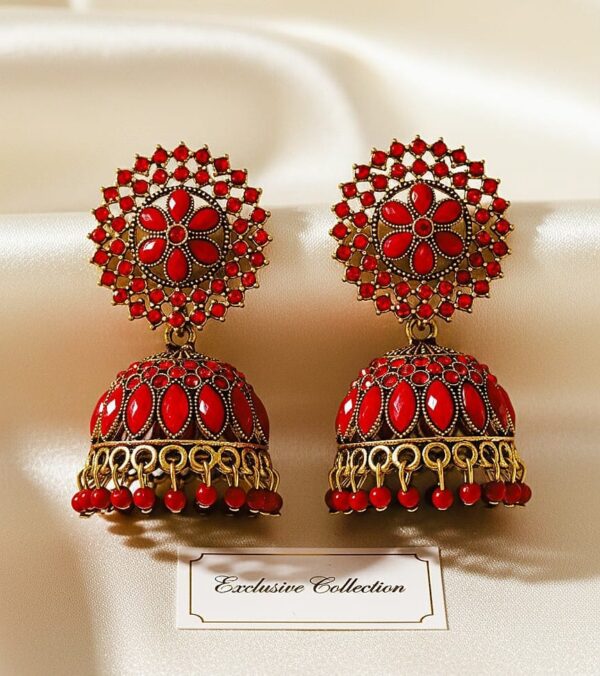 • Red Stone Studded Traditional Jhumka Earrings – Exclusive Collection