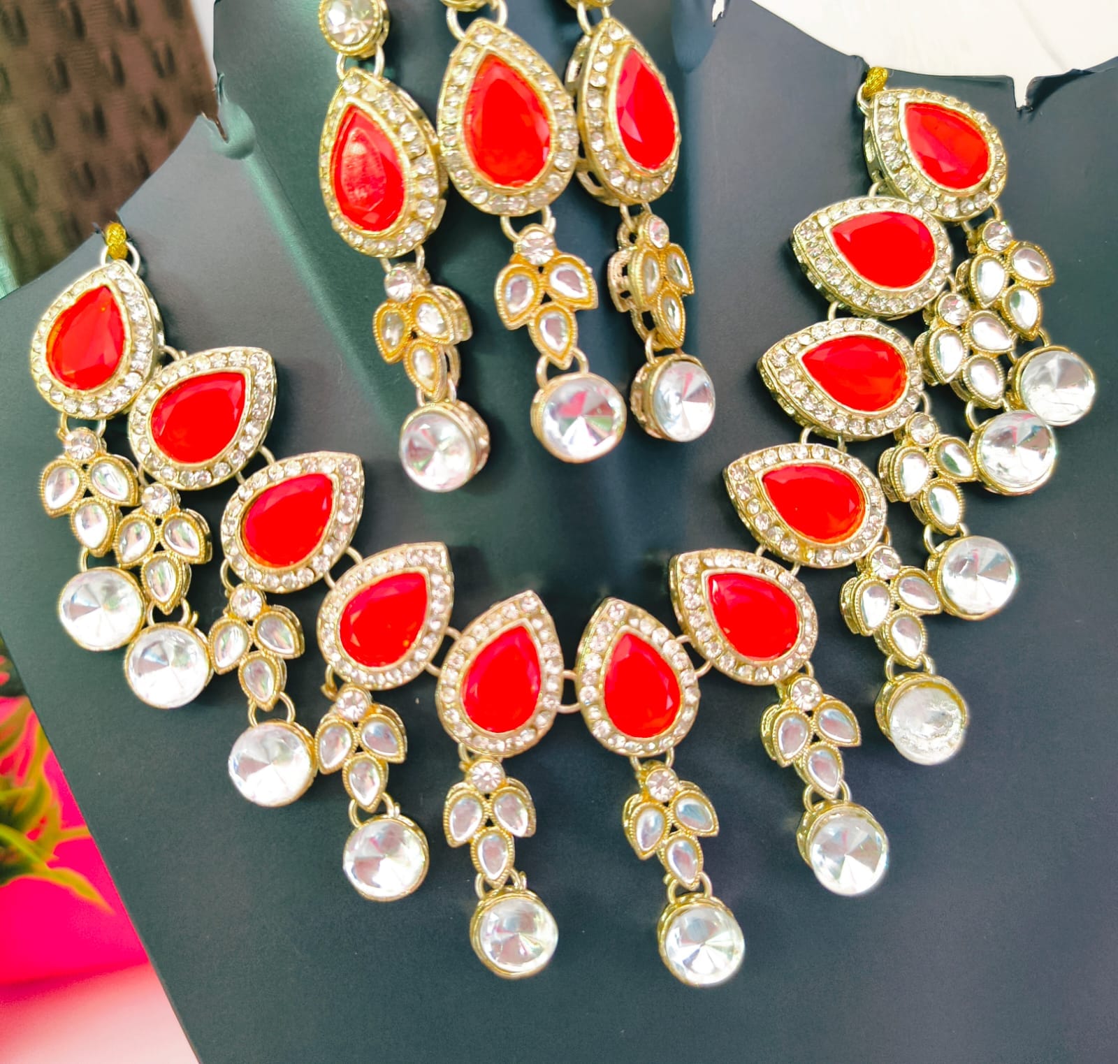 • Red & Gold Bridal Choker Necklace Set