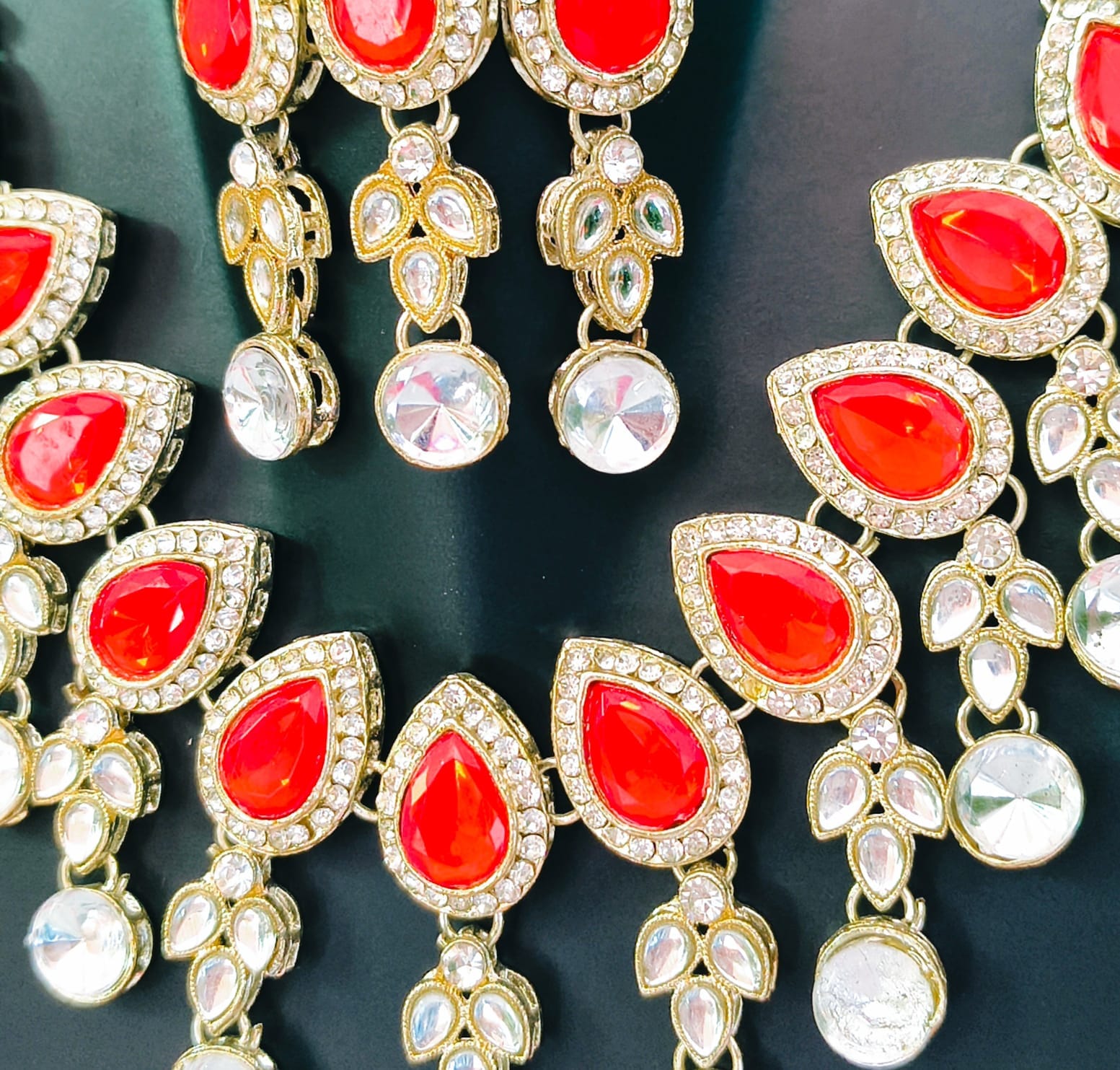 • ​Stones: Pear-shaped (teardrop) red stones, clear crystal borders.
