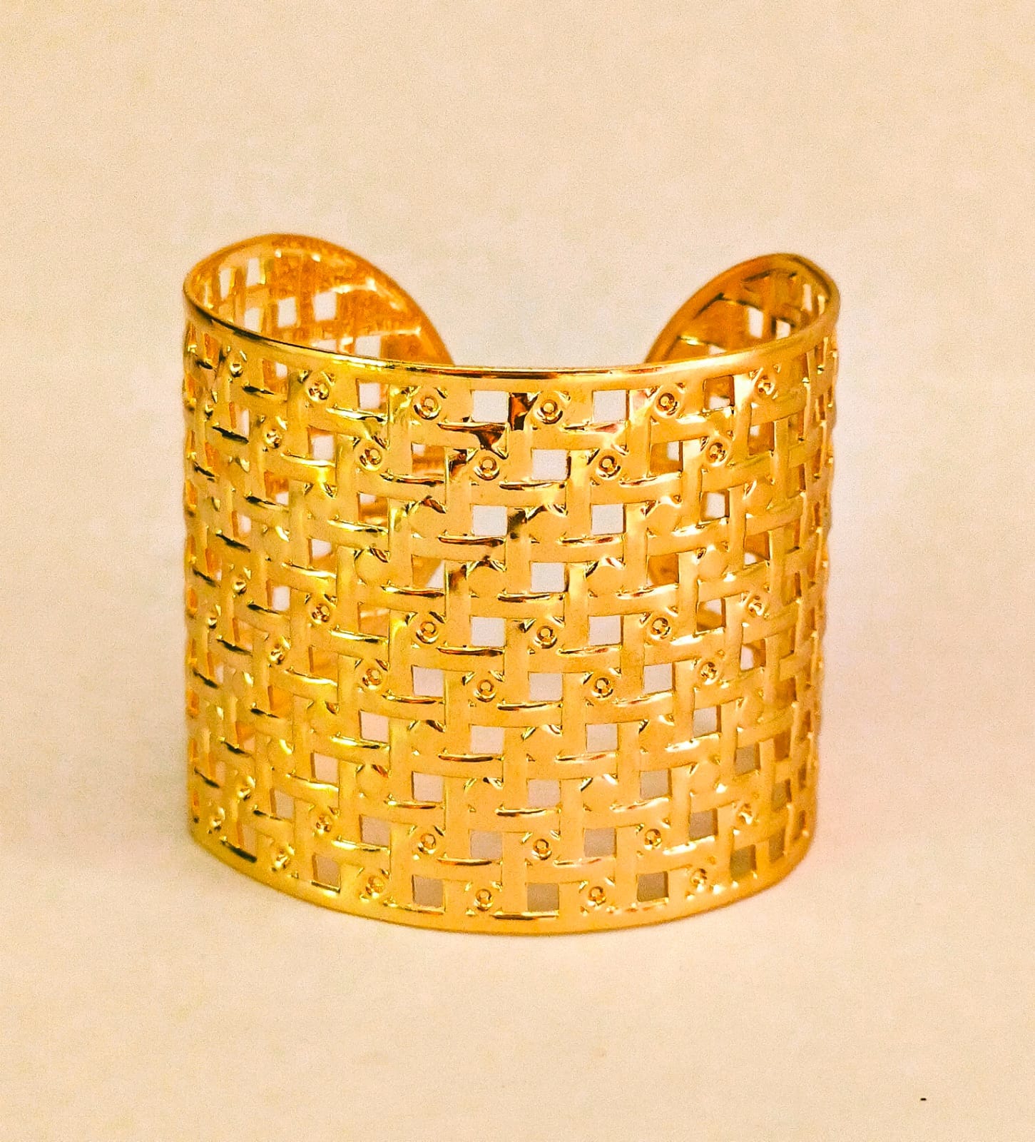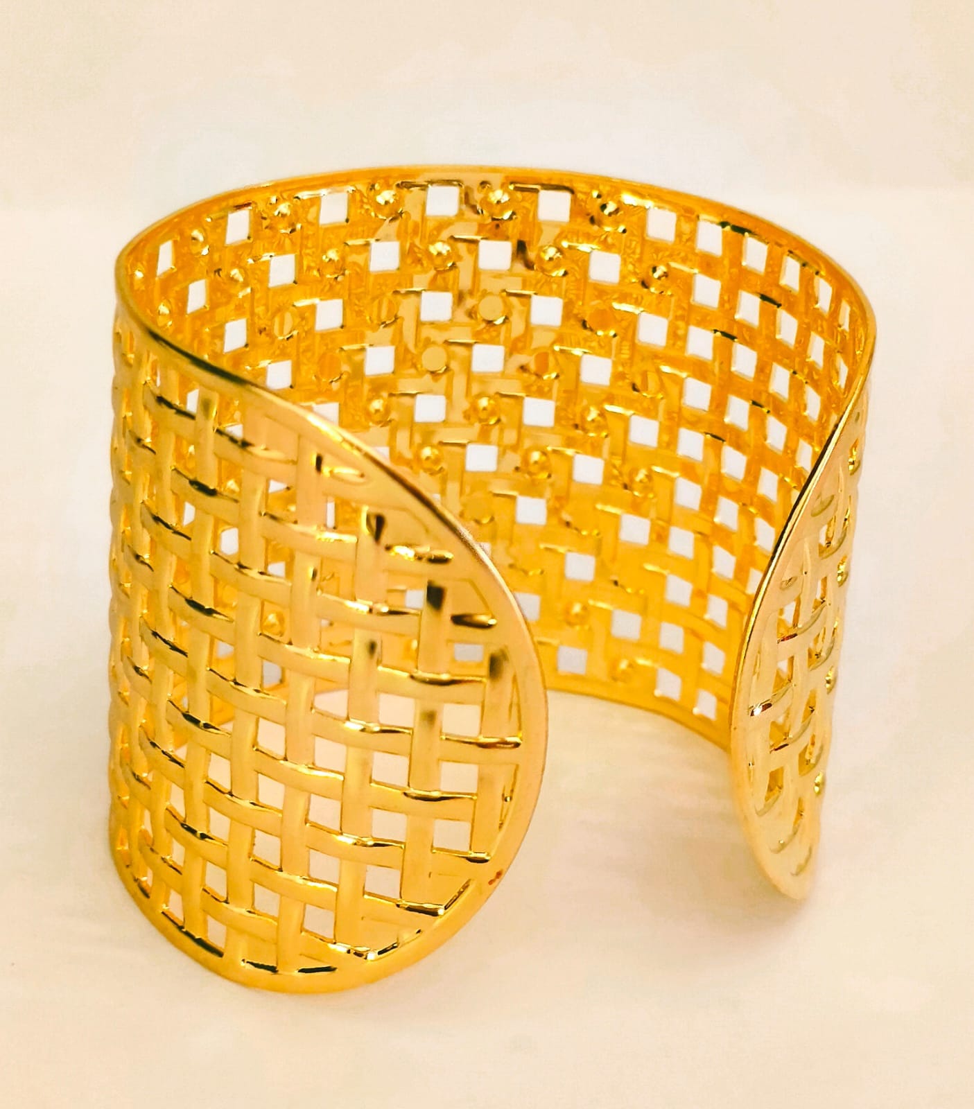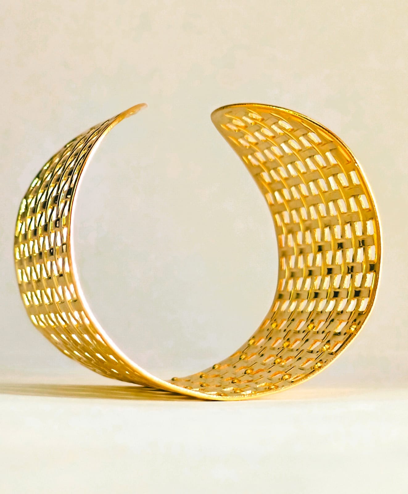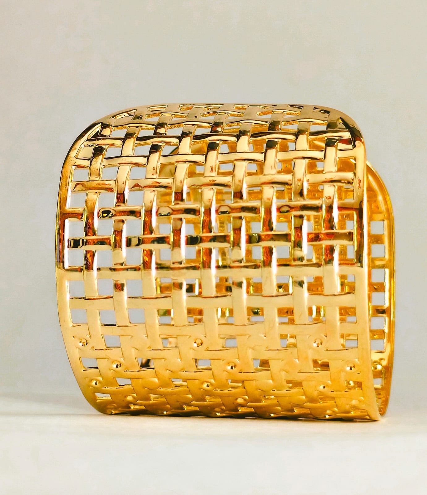 Luxora Lattice Basket Weave Cuff – Gold Plated Wide Architectural Bangle
