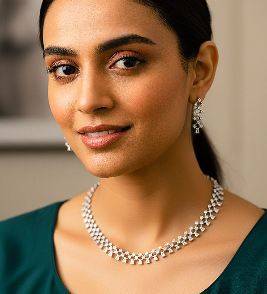 Investing in this set isn’t just about buying jewelry; it’s about owning a piece of wearable art that celebrates elegance in its purest form. With its classic white-stone sparkle and contemporary silhouette, the Ethereal Lattice set will remain a staple in your collection for years to come.